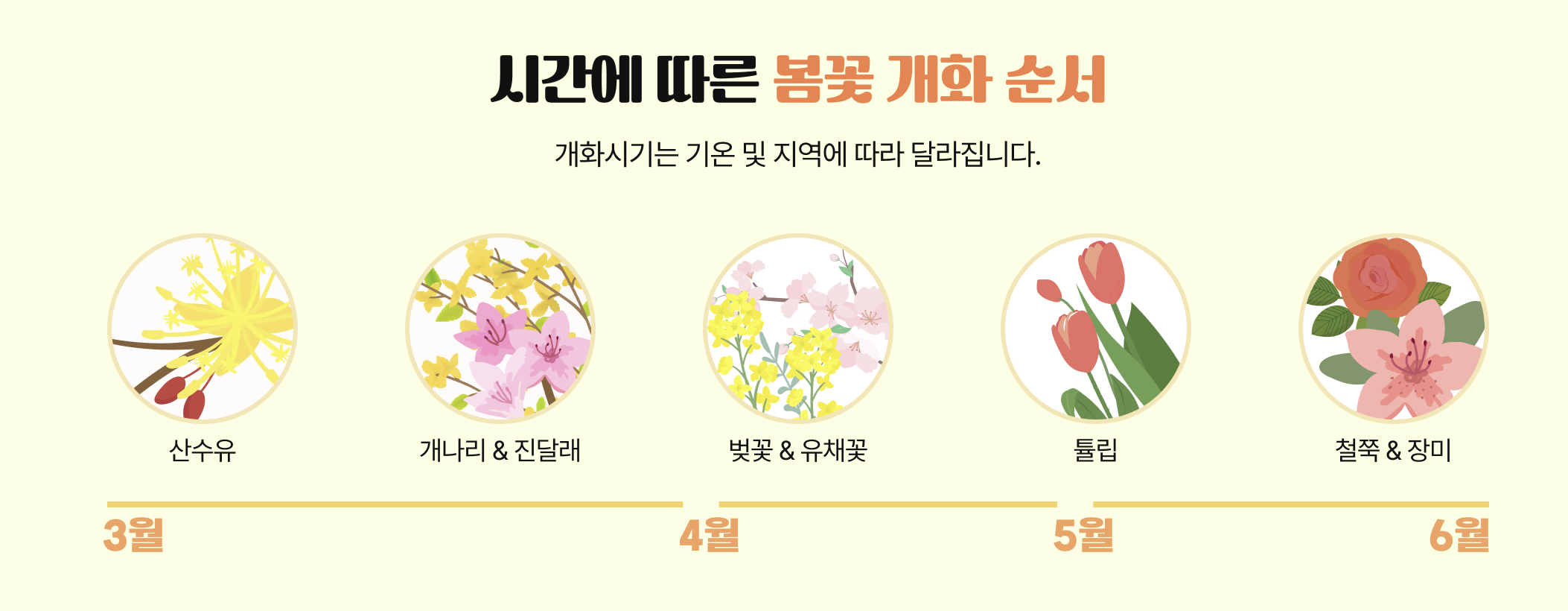 보통 따뜻한 남쪽 지방부터 꽃이 피기 시작해 점점 북쪽으로 올라갑니다. 이번엔는 꽃이 피는 순서로 남쪽에서 북쪽으로 올라오면서 대한민국 국내의 3월 봄꽃 여행지를 추천 소개해 드릴게요! 꽃놀이 계획하시는 분들은 개화 시기까지 참고해서 일정 짜보세요