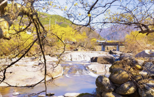 전국 최대의 산수유 군락지! 노란 산수유꽃이 마을 전체를 뒤덮으며, 3월 중순이면 절정을 이뤄요.
